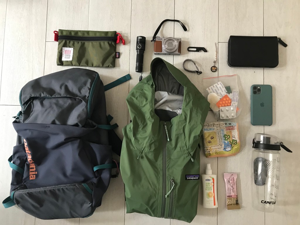 - Patagonia Women’s Rainshadow Jacket (camp green color): waterproof, minimal design, and Patagonia quality. Nothing to add except that approaching perfection.